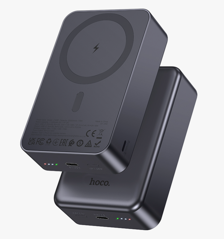 Портативный аккумулятор Hoco J160B PD20W (20000mAh) цвета серый металлик — внешний аккумулятор с поддержкой беспроводной и кабельной зарядки.